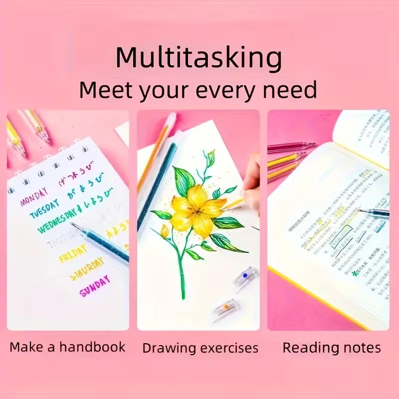 12pcs Color-Changing Glitter Gel Pens – Creative Highlighters for Art, Drawing & Office Supplies
